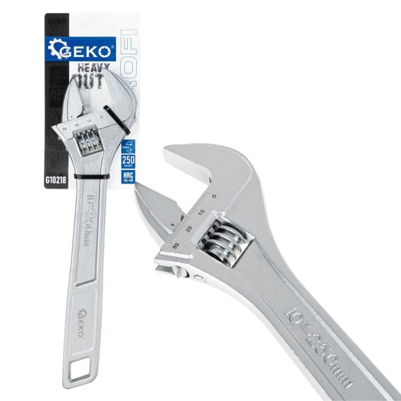 Klucz nastawny GEKO PROFI HEAVY DUTY to niezawodne narzędzie, idealne zarówno do zastosowań profesjonalnych, jak i domowego warsztatu. Wykonany z wysokiej jakości stali narzędziowej CRV, zapewnia wyjątkową trwałość, odporność na ścieranie i długą żywotność. Dzięki twardości 46-48 HRC, klucz jest odporny na odkształcenia i uszkodzenia, nawet przy intensywnym użytkowaniu.