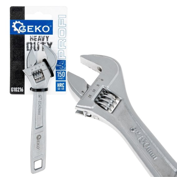Klucz nastawny GEKO PROFI HEAVY DUTY to niezawodne narzędzie, idealne zarówno do zastosowań profesjonalnych, jak i domowego warsztatu. Wykonany z wysokiej jakości stali narzędziowej CRV, zapewnia wyjątkową trwałość, odporność na ścieranie i długą żywotność. Dzięki twardości 46-48 HRC, klucz jest odporny na odkształcenia i uszkodzenia, nawet przy intensywnym użytkowaniu.