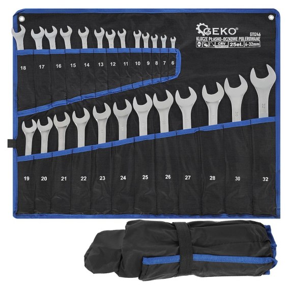 GEKO Klucze płasko-oczkowe satyna 6-32mm 25el.CRV/op.płachta/(4) G11246