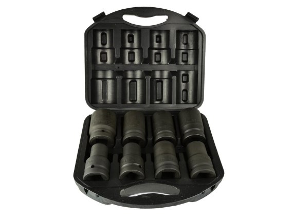 Nasadki udarowe wykonane ze stali CRV 1'' Gniazdo nasadki jest wykonane ze dużą dokładnością, zgodnie z wyższymi klasami dokładności określonymi w normie. Nasadki współpracują z urządzeniami pneumatycznymi, oraz grzechotkami które pracują w ciężkich warunkach pod zmiennymi obciążeniami .